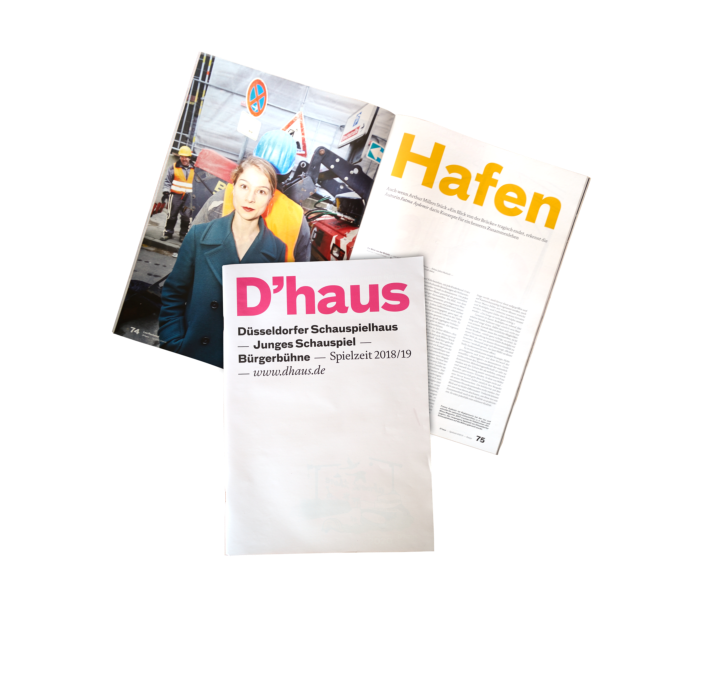 Jahresspielzeitheft D’hausEine Publikation in Kombination mit Texten und Bildern für alle die Schauspiel lieben und Theater erleben wollen.Herausgeber: Düsseldorfer SchauspielhausDruck und Verarbeitung: Druck-Studio Hartmut KühlerDieses Projekt, mit großen Herausforderungen im Druck und Termin, wurde zur besten Zufriedenheit des Kunden produziert.Muster senden wir Ihnen gerne.